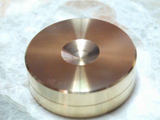 外径40ミリ、厚み12ミリ 中央のくぼみ120度、角面取り1.5C 真鍮製